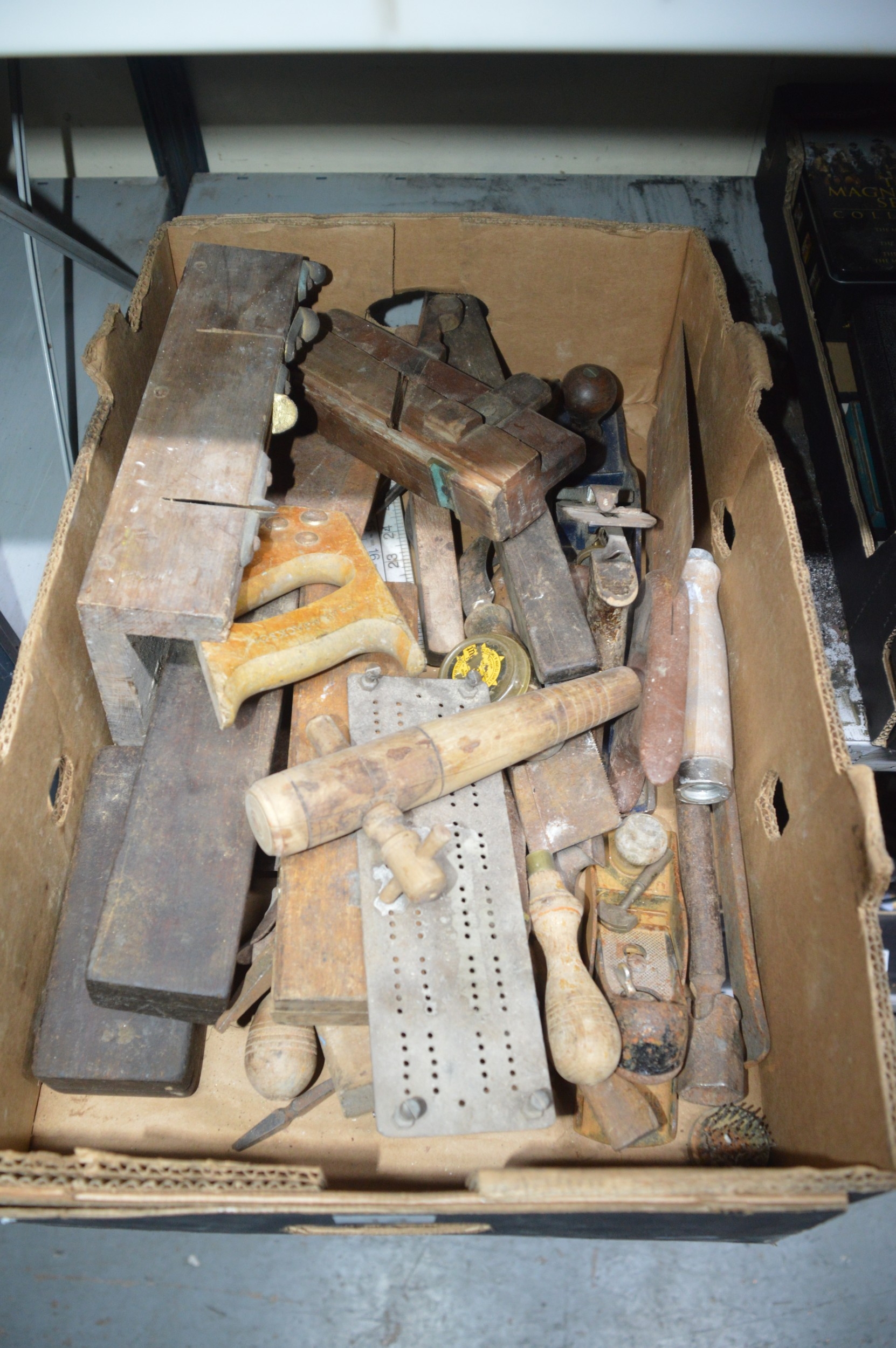 box of woodworking tools